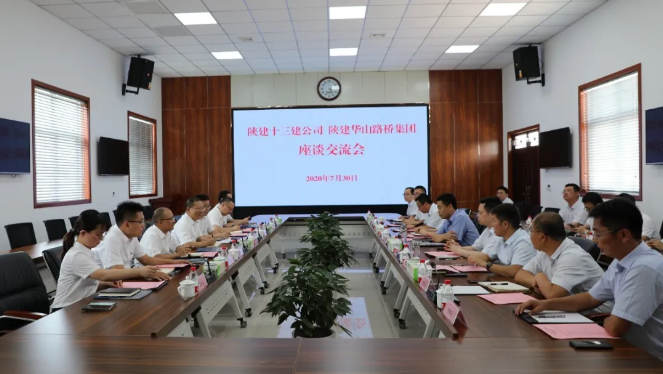 下午,陜建十三建公司赴華山路橋集團進行座談交流,華山路橋集團黨委書記、董事長宋召軍,陜建十三建公司黨委書記、董事長卜國平出席座談。
