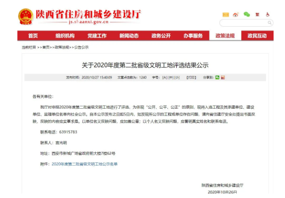 陜西省住房和城鄉(xiāng)建設廳公示了