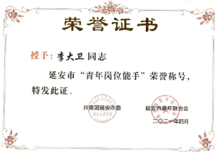 陜建十三建集團團委被授予“延安市五四紅旗團委”稱號,集團南泥灣現(xiàn)代農(nóng)業(yè)示范園項目青年突擊隊被授予“延安市青年突擊隊”稱號,楊永宏被授予“延安市十佳青年突擊手”稱號,薛淑元被授予“延安市優(yōu)秀共青團干部”稱號,楊超被授予“延安市青年突擊手”稱號,李大衛(wèi)被授予“延安市青年崗位能手”稱號。