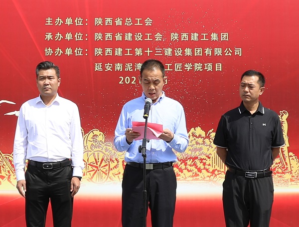 陜西建工集團黨委常委、副總經(jīng)理劉小強在致辭中表示陜建作為我省最大的國企建筑鐵軍,在省委、省政府的領導下,在70余年的發(fā)展長河中,建設了一大批國防、科教、文衛(wèi)、公共服務等重點項目,積極服務于陜西發(fā)展和國家建設,既有深厚的文化積淀,又有雄厚的綜合實力。有幸承建延安南泥灣勞模工匠學院這個重點項目,我們倍感榮幸,倍加珍惜。我們已將該項目列為十三建集團的“一號工程”,調(diào)集精兵強將,以“出手必須出彩,完成必須完美”的作風、“開局就是決戰(zhàn),起步就是沖刺”的魄力,“努力到無能為力,拼搏到感動自己”韌勁,科學合理、協(xié)調(diào)高效的管理模式,將項目建設成為優(yōu)質結構工程、綠色施工示范工程,爭創(chuàng)魯班獎,為省總工會交上一份滿意的“答卷”。