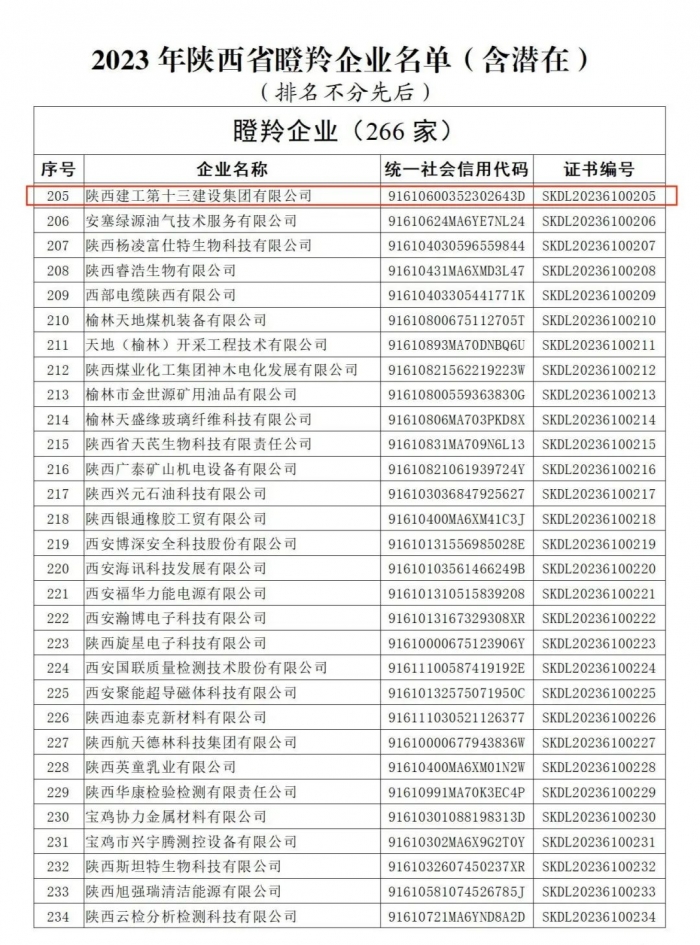 近日,陜西省科學(xué)技術(shù)廳公布了《2023年陜西省瞪羚企業(yè)》名單。陜建十三建集團(tuán)被評為2023年陜西省瞪羚企業(yè)。