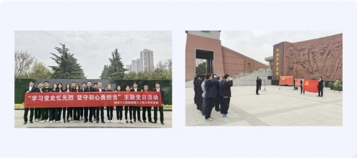3月29日-4月3日,陜建十三建集團(tuán)各單位積極組織黨員干部職工開展“學(xué)習(xí)黨史憶先烈·堅守初心勇?lián)?dāng)”清明節(jié)主題黨日活動,旨在銘記歷史,緬懷先烈,激勵大家勇于擔(dān)當(dāng)、奮進(jìn)前行,助推企業(yè)高質(zhì)量發(fā)展!