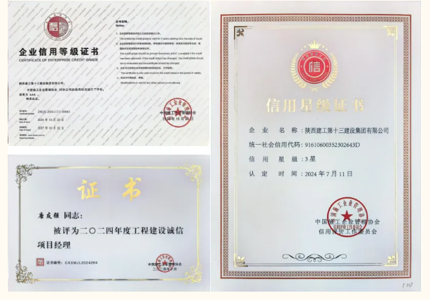近年來,陜建十三建集團(tuán)高度重視企業(yè)信用建設(shè),堅(jiān)持把誠(chéng)信經(jīng)營(yíng)作為企業(yè)高質(zhì)量發(fā)展的基石,秉承“敬業(yè)守信、勇?lián)?zé)任、建造精品、追求卓越”的企業(yè)精神,在堅(jiān)定屬地市場(chǎng)的同時(shí)持續(xù)開拓域外市場(chǎng),不斷壯大主業(yè)規(guī)模,樹立良好的口碑和品牌形象;踐行“四新”戰(zhàn)略,拓展新領(lǐng)域、新業(yè)態(tài),助推企業(yè)轉(zhuǎn)型升級(jí)和高質(zhì)量發(fā)展;加強(qiáng)工程項(xiàng)目精細(xì)化管理,守好安全底線,嚴(yán)把質(zhì)量關(guān),推動(dòng)項(xiàng)目實(shí)現(xiàn)優(yōu)質(zhì)履約;提升內(nèi)控工作水平,強(qiáng)化制度建設(shè)與風(fēng)險(xiǎn)防控,保障企業(yè)規(guī)范平穩(wěn)運(yùn)行。集團(tuán)先后榮獲延安市建筑業(yè)AAA級(jí)信用企業(yè)、陜西省信用協(xié)會(huì)信用建設(shè)先進(jìn)單位。